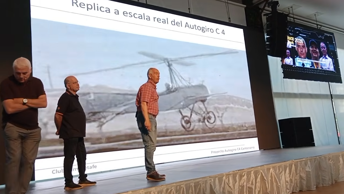 Pasamos a un tema tangible como es la construcción de la réplica del C4, el conocido autogiro de Juan de la Cierva. Los miembros del Club Ultraligeros Getafe nos dieron una clase magistral tanto de historia como de la construcción de la réplica del autogiro. Nos contaron los pros y contras que tuvieron durante el tiempo que duró su construcción, de la cual apenas había documentación y que han tenido que hacer pruebas de ensayo y error para conseguir finalizarlo.
