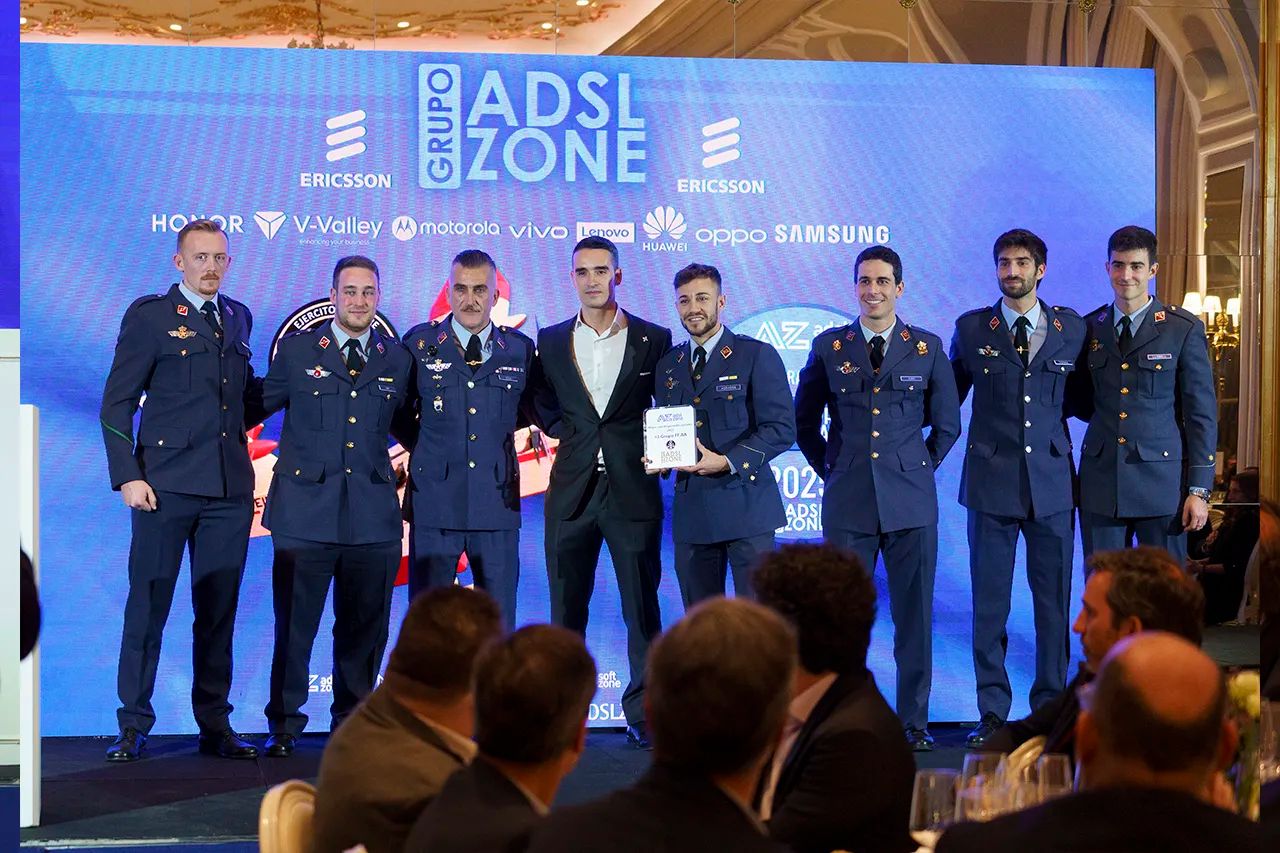 Representantes del Grupo 43 de las Fuerzas Aéreas recogiendo el Premio Grupo ADSLzone 2025 a su labor en redes sociales | Foto ADSLZone