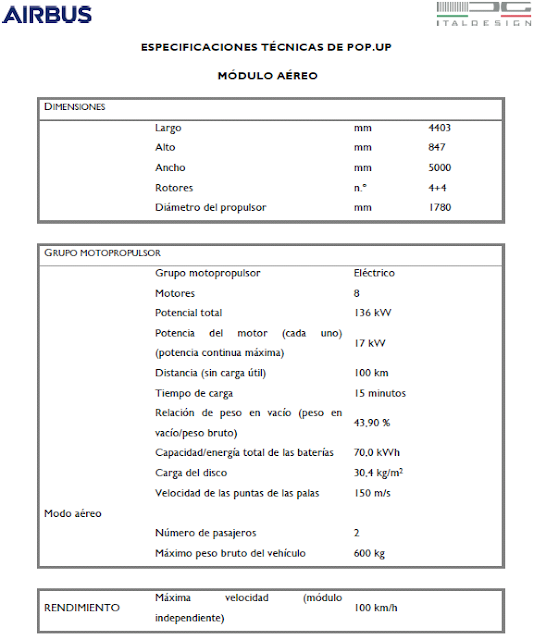 - Como adelantábamos el vehículo está compuesto de tres partes: una cápsula, Pop Up, para los pasajeros, un módulo autónomo terrestre con ruedas y un módulo autónomo aéreo con 8 rotores montados en 4 brazos, de dos en dos y contrarrotatorios.