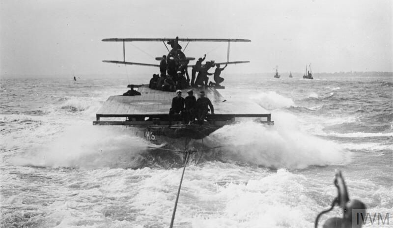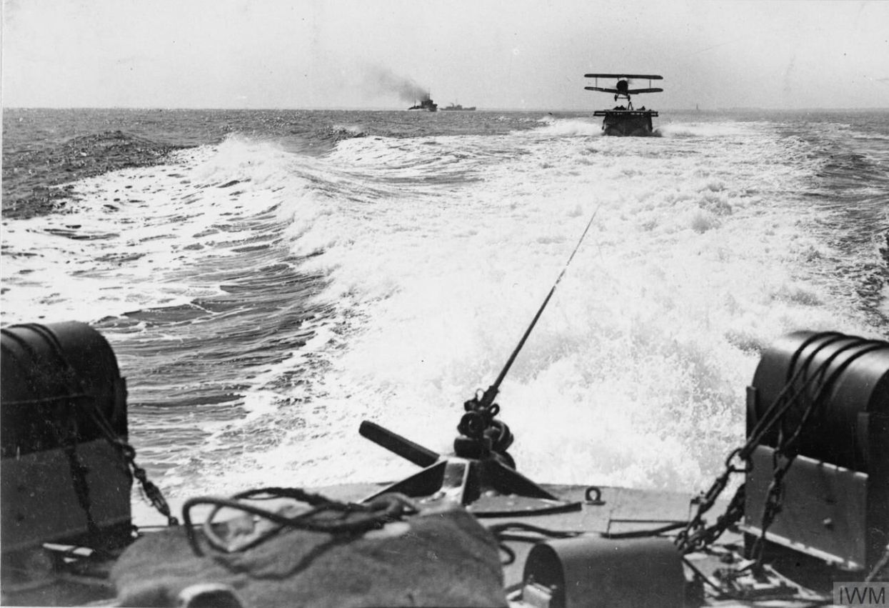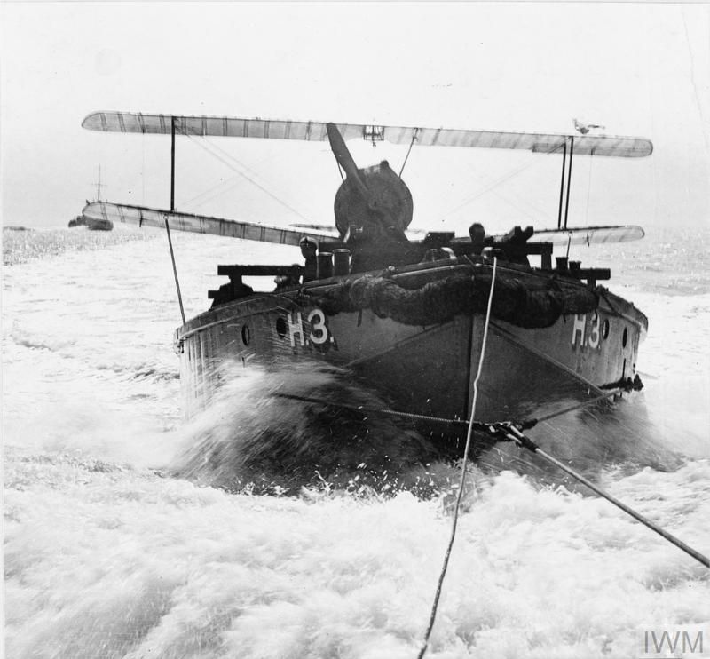 - Towing a Sopwith Camel on a lighter, at full speed before release. Note the skids on the aircraft.