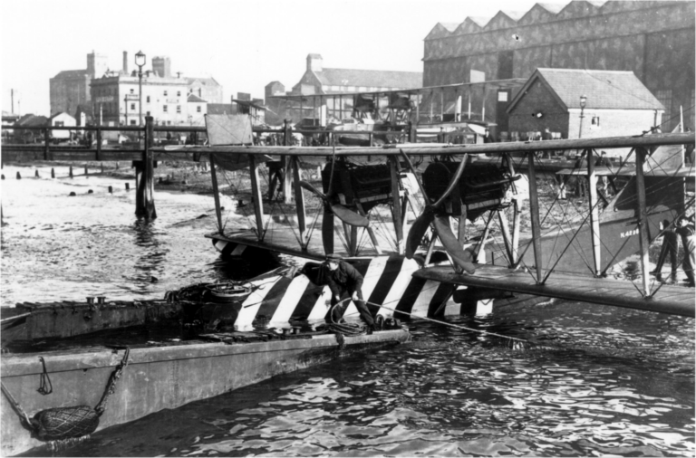 - Commander C R Samson DSO making his first flight in a Sopwith Camel off a lighter doing 30 knots. When the machine was released, it went into the sea, the lighter passed over it and pushed it under.