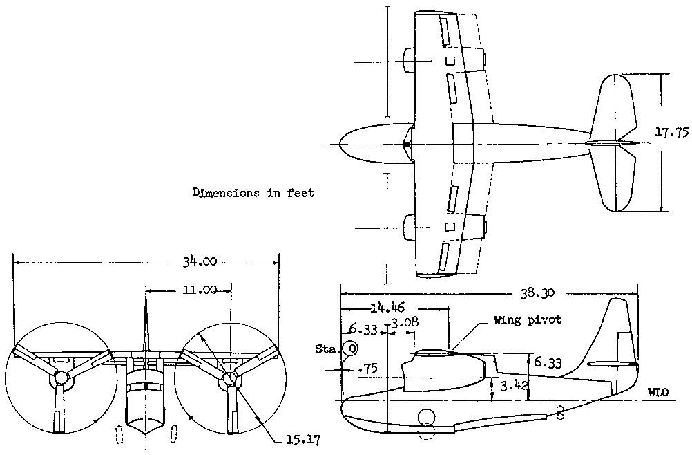 La potencia era suministrada por un par de turbohélices General Electric T58-GE-2A. La velocidad de vuelo máxima proyectada era de hasta 480 km/h.