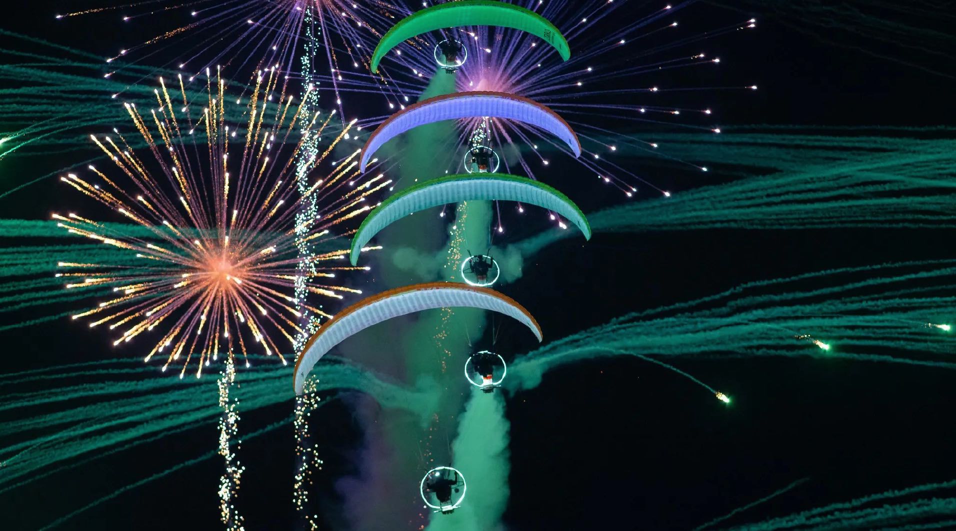 Team, un equipo de paramotores equipados con iluminación LED y pirotécnia que potenciarán aún más el Show Nocturno del Sábado 19, que vuelve a contar con el patrocinio de Port Aventura World.