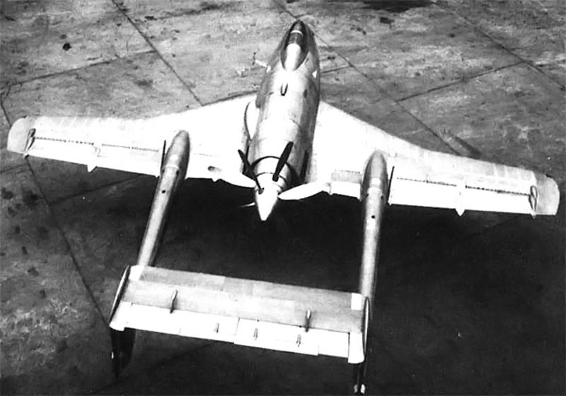 El ala, de perfil laminar, se había planteado en flecha, con flecha variable, más pronunciada cerca del encastre (24º) y más suave (13.5º) en los paneles más externos de la misma. El armamento hubiera consistido en seis poderosos cañones MG 151 de 20mm, ¡también alemanes!, y hubiera podido transportar una carga de bombas de 1000kg.
